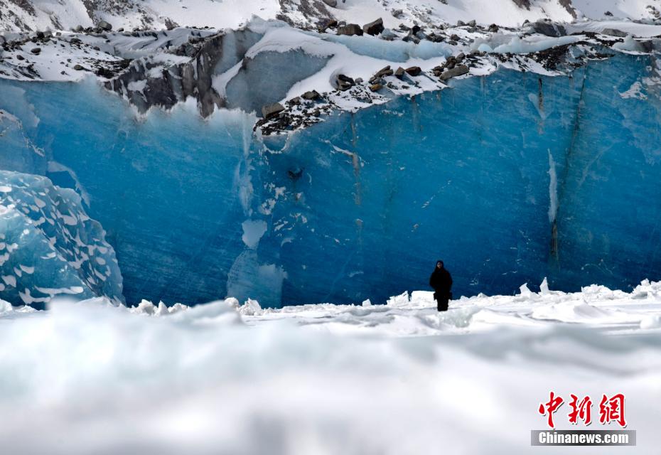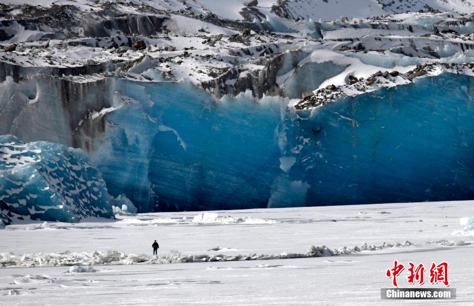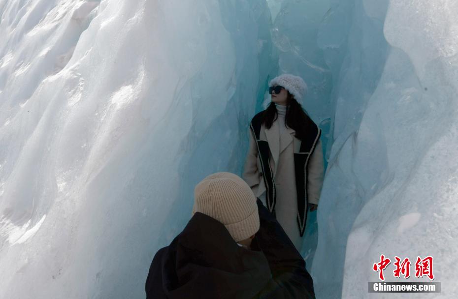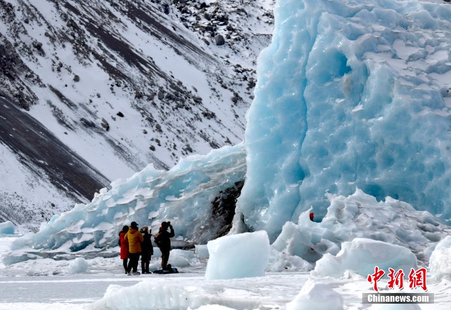 2月16日,西藏昌都來古冰川,游客拍照留念。來古冰川屬海洋性冰川,為一組冰川的統稱,其位于西藏昌都八宿縣然烏鎮境內,緊鄰然烏湖,是帕隆藏布的源頭。冬天的來古冰川有著別樣的景致,陽光照射下顯出藍色,吸引眾多游客前來觀賞。