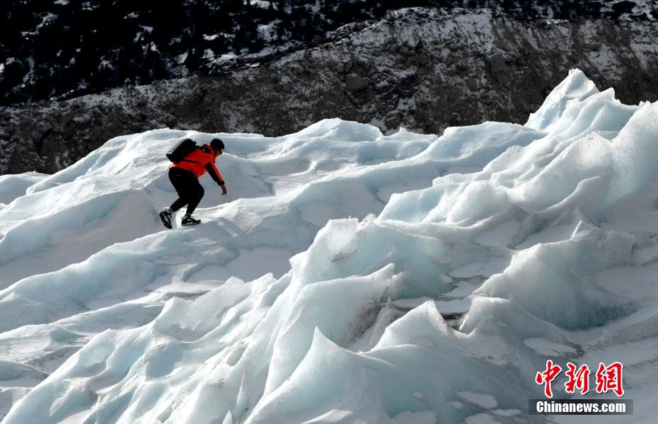 2月16日,游客徒步走向來古冰川。