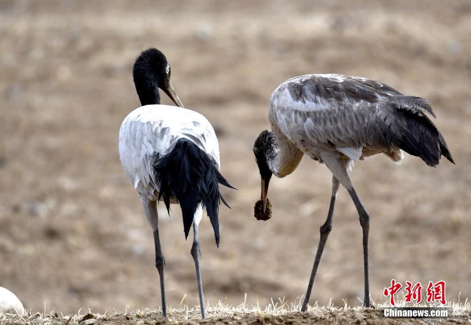 2月19日,西藏拉薩堆龍德慶區(qū)楚布溝內(nèi)的一處農(nóng)田里,一群黑頸鶴正在覓食。時(shí)下,在雅魯藏布江中游河谷一帶的農(nóng)田和水域,黑頸鶴等眾多候鳥或覓食或棲息,成為初春一抹亮麗色彩。黑頸鶴是國家一級保護(hù)動(dòng)物,也是唯一生活、繁殖在高原的鶴類。在河谷地帶越冬的黑頸鶴一直要待到三四月份才會(huì)北上到藏北,開啟新的生活。