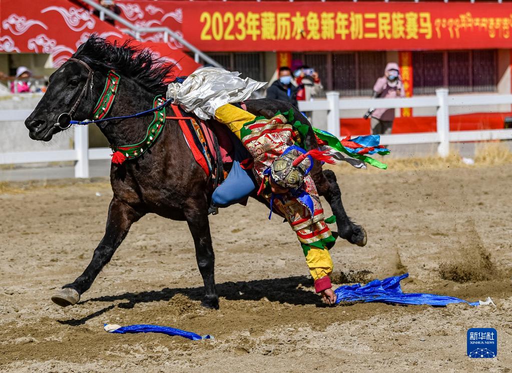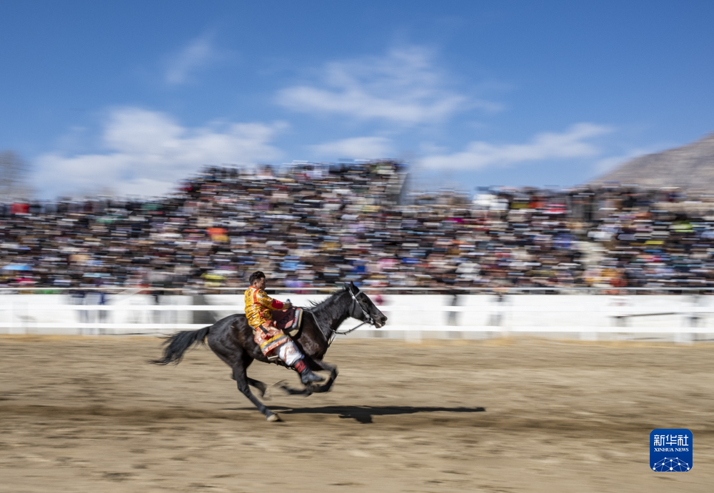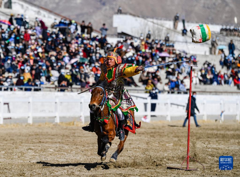 2月23日,在拉薩賽馬場舉辦馬術表演已成為當地慶祝新年的傳統,深受廣大群眾喜愛。騎手們英姿颯爽,為觀眾們帶來騎馬拾哈達、騎馬射箭等精彩表演。