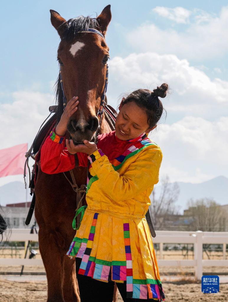 2月23日,騎手在表演前和賽馬互動。新華社發(丁增尼達 攝)