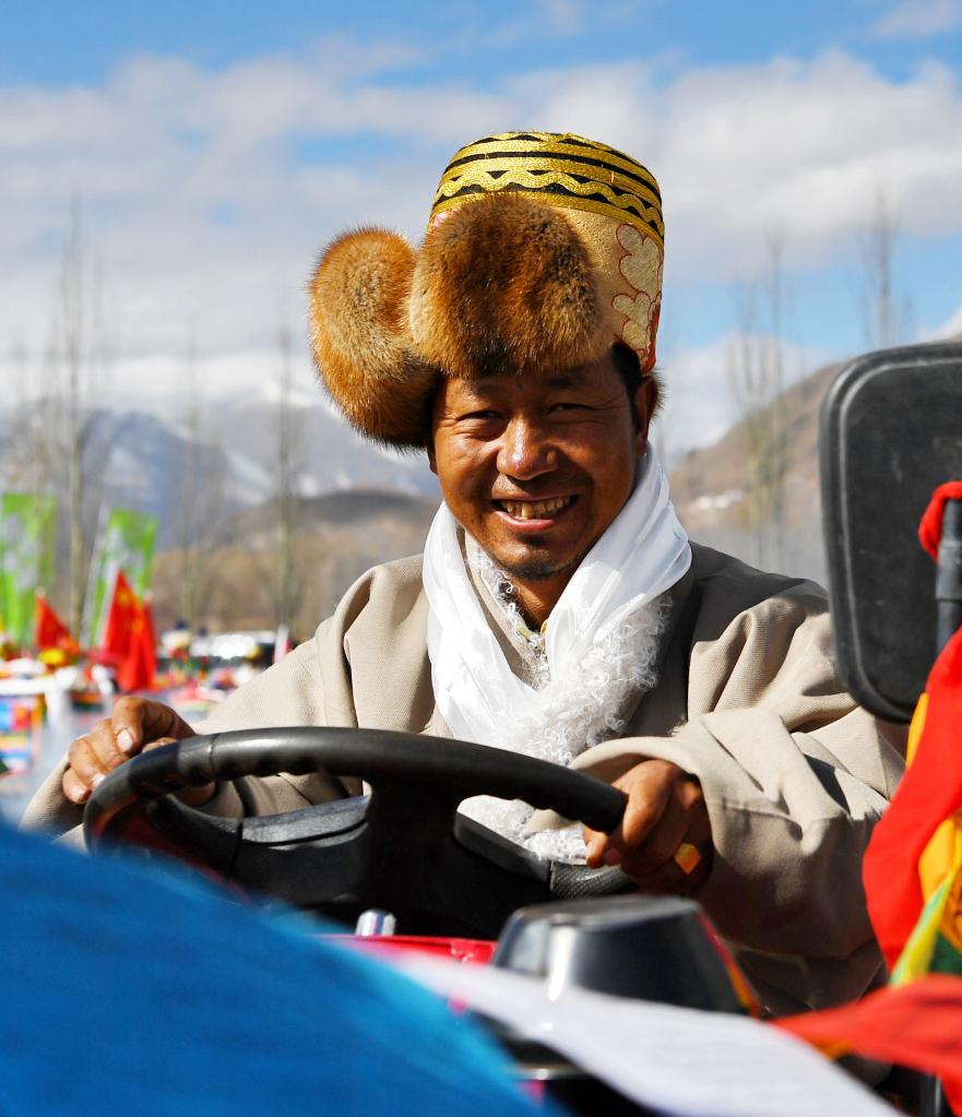 西藏林周縣強嘎村的春耕儀式上駕駛農機的村民(3月16日攝)。新華社記者 張汝鋒 攝