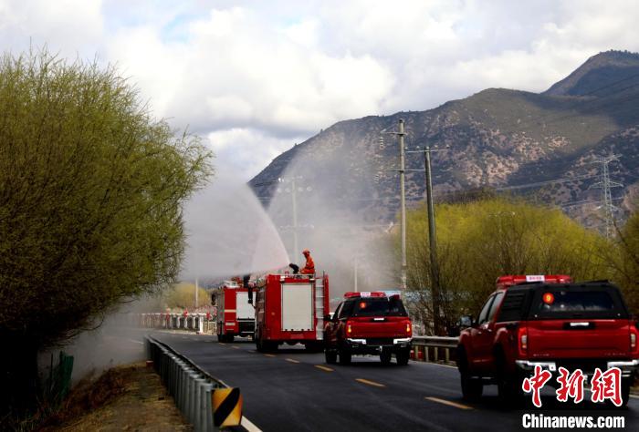 林芝市森林消防支隊(duì)消防員正在進(jìn)行灑水增濕作業(yè)。西繞拉翁 攝