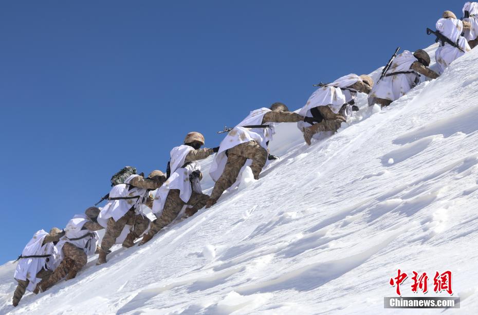 3月21日,阿里軍分區某邊防團巡邏官兵翻越冰雪達坂向點位前行。劉曉東 攝