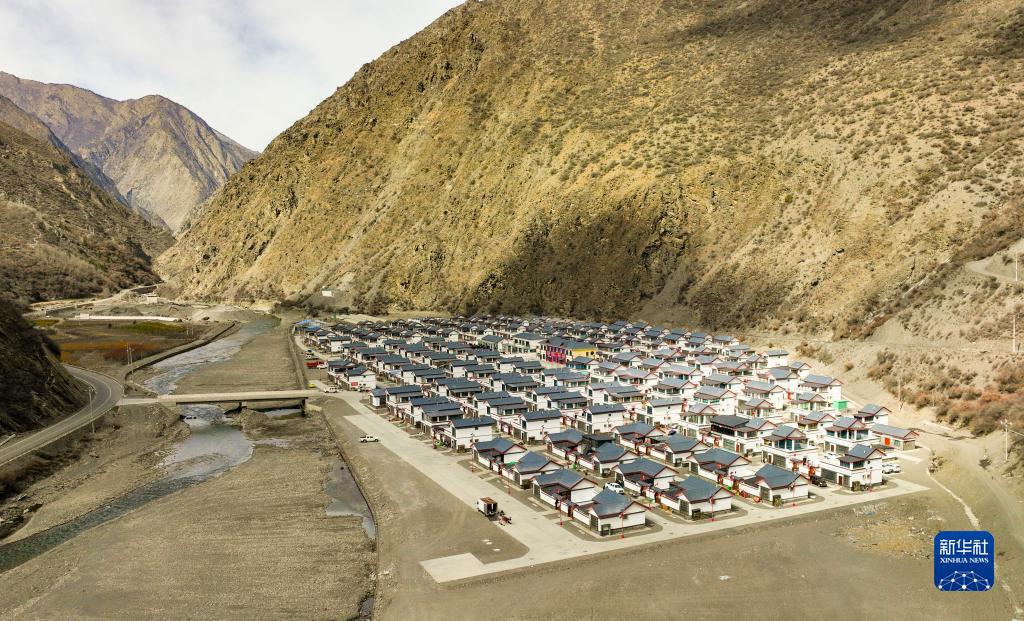 這是西藏山南隆子縣斗玉珞巴民族鄉繞讓搬遷安置點(2023年2月15日攝,無人機照片)。新華社記者 晉美多吉 攝