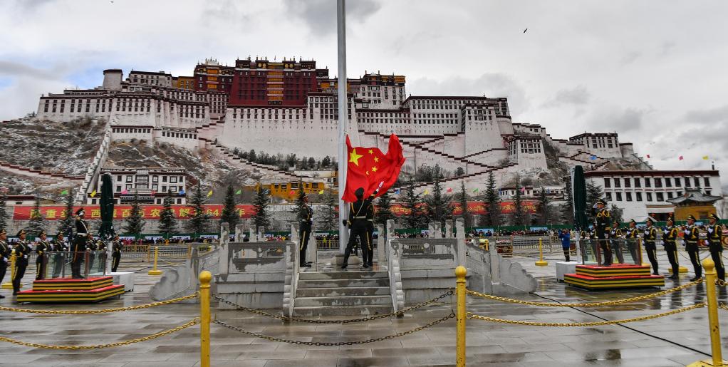 布達拉宮廣場舉行升旗儀式(3月28日攝)。新華社記者晉美多吉 攝