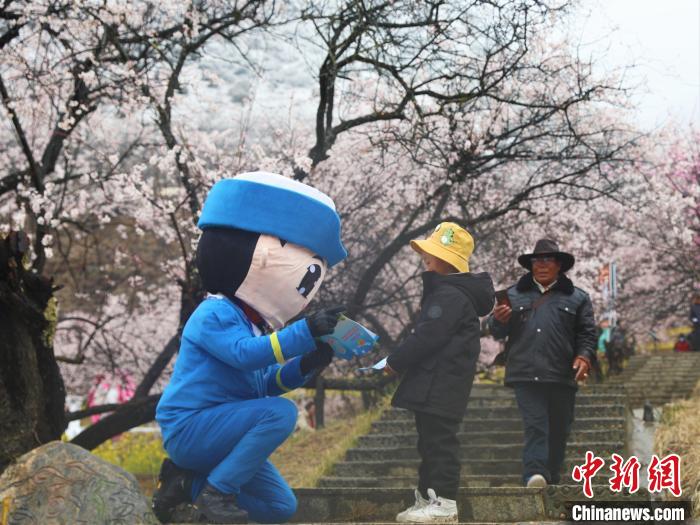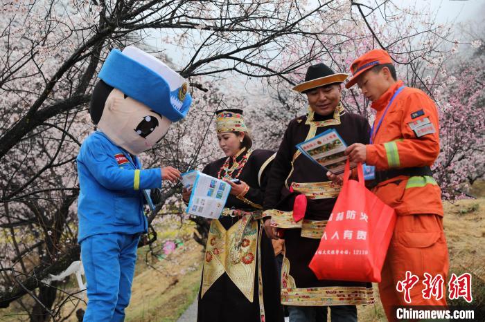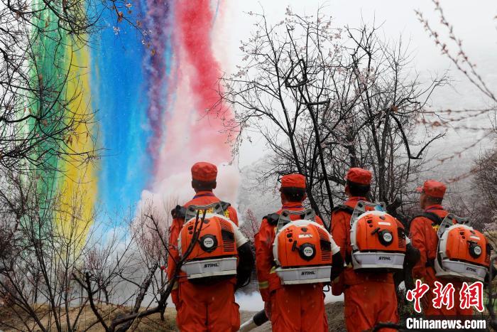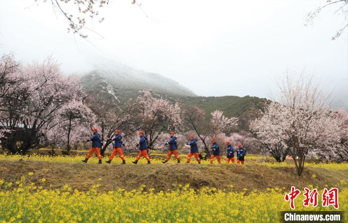 林芝市森林消防支隊指戰員穿梭在桃林中,對景區重點部位和消防設施進行消防巡查,及時應對可能發生的突發事件,做好滅火救援各項準備工作。