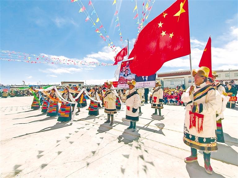 悠揚的歌聲獻給黨,歌唱黨的英明領導;歡快的舞蹈跳起來,跳出人民幸福生活。從珠峰腳下到年楚河畔,從高原牧場到山谷林地,處處升起面面五星紅旗,贊美共產黨的歌聲響徹天際,匯聚起強大動能。