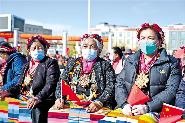 升旗儀式結束后,在場各族干部群眾觀看了日喀則市紀念西藏百萬農奴解放64周年專題文藝演出。大家紛紛表示,經歷過寒冬的人,最知道太陽的溫暖;親歷過黑暗的人,最知曉光明的珍貴。我們要更加緊密地團結在以習近平同志為核心的黨中央周圍,堅持以習近平新時代中國特色社會主義思想為指導,忠誠捍衛“兩個確立”、堅決做到“兩個維護”,牢記囑托、感恩奮進,大力踐行“四敢”要求,努力在推進“四個創建”、做到“四個走在前列”中爭創一流、奮勇爭先,為全面建設社會主義現代化新日喀則不懈奮斗!