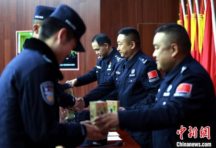 3月31日,授予驗訖章的移民管理警察與領(lǐng)導合影。 肖富貴 攝