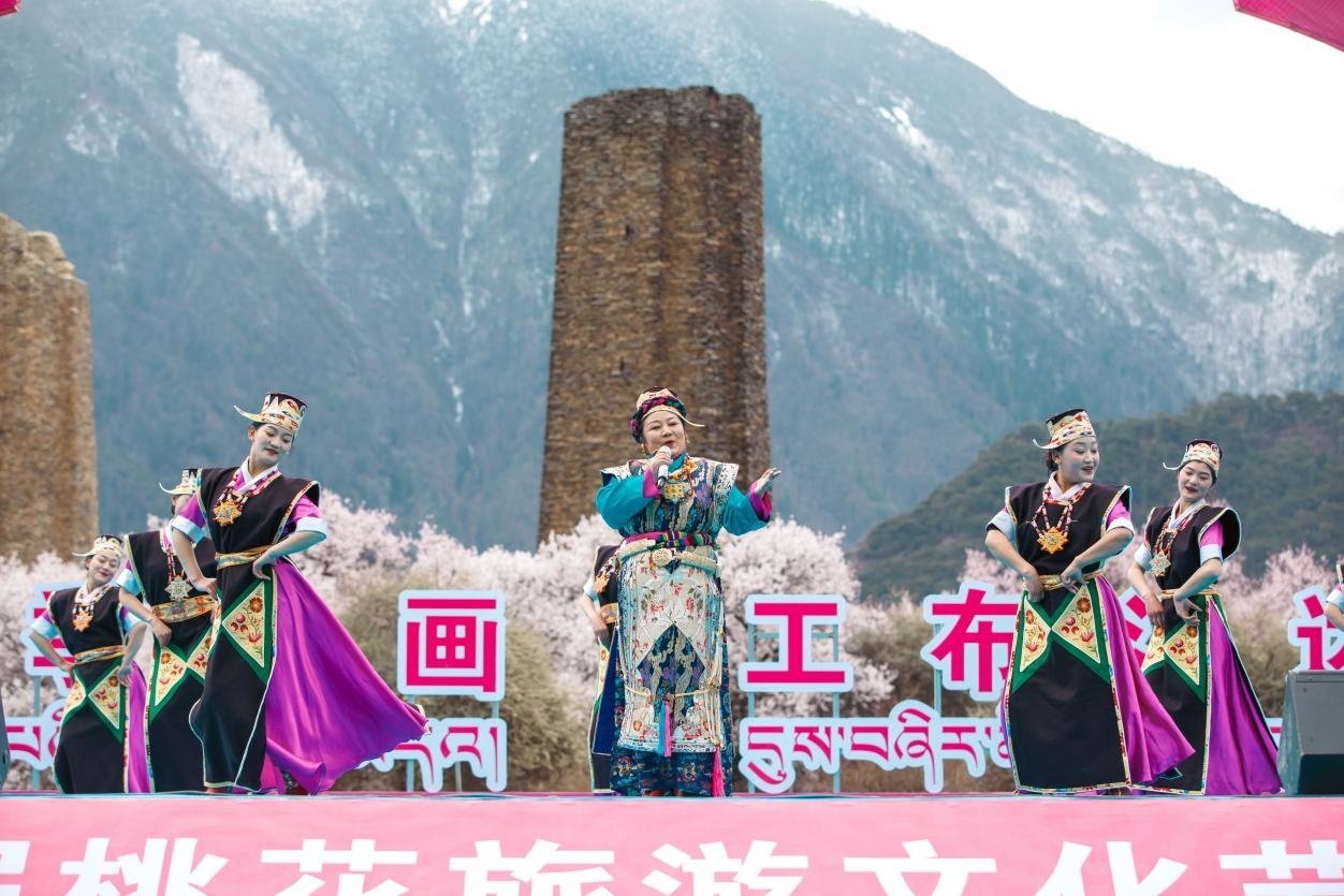 皚皚雪山下,千年古堡旁,灼灼桃花,花開正艷。羅布桑珠、巴金旺甲、齊旦布、桑杰才讓等藏族知名歌手、工布江達本地歌手、當地群眾齊聚,流行歌曲與工布民歌等當地特色表演結合,為網友們獻上了一場桃花樹下的歌舞盛宴。