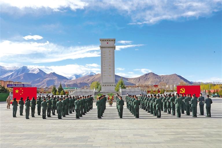 拉薩警備區某團組織官兵瞻仰烈士紀念碑。