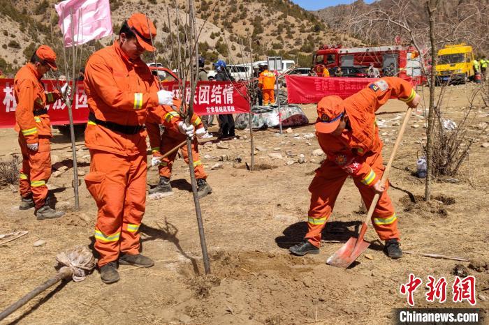 西藏左貢森林消防參加義務(wù)植樹?!埡椤z
