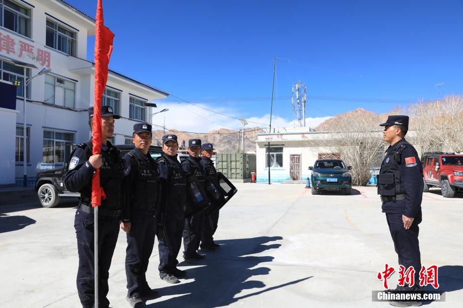 近日,西藏阿里邊境管理支隊扎西崗邊境派出所組織民警和護邊員通過乘車巡邏和徒步巡邏相結合的方式,前往海拔4800米的“守邊固邊第一村”——典角村古格川執勤點巡邏,經過一個小時的車巡和一個小時的徒步巡邏,民警到達了古格川執勤點。通過巡邏,及時掌握了邊境一線情況,確保了邊境轄區安全穩定。圖為扎西崗邊境派出所民警巡邏前集合整隊。郭遠敬 攝
