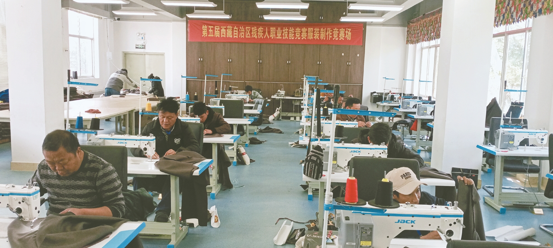 圖為拉薩代表隊選手參加西藏第五屆殘疾人職業技能競賽服裝制作比賽現場。拉薩融媒記者 齊永昌攝