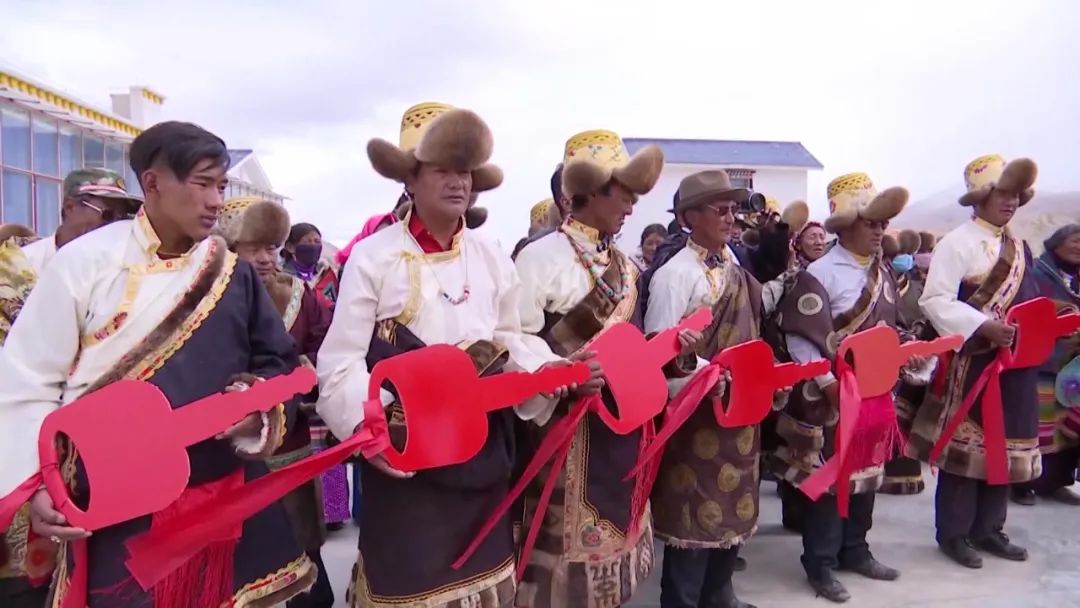 走進阿里地區噶爾縣扎西崗鄉典角村一組,明媚的陽光將村里“第五代”房——25套小康村新居,湛藍的屋頂、白色的外墻和彩色的藏式屋檐照得格外鮮艷。