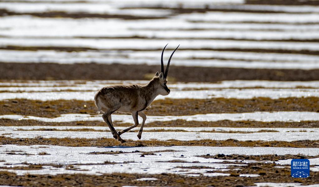 這是在羌塘國家級自然保護區(qū)那曲市雙湖縣區(qū)域內(nèi)拍攝到的藏原羚(4月16日攝) 。新華社記者 格桑邊覺 攝