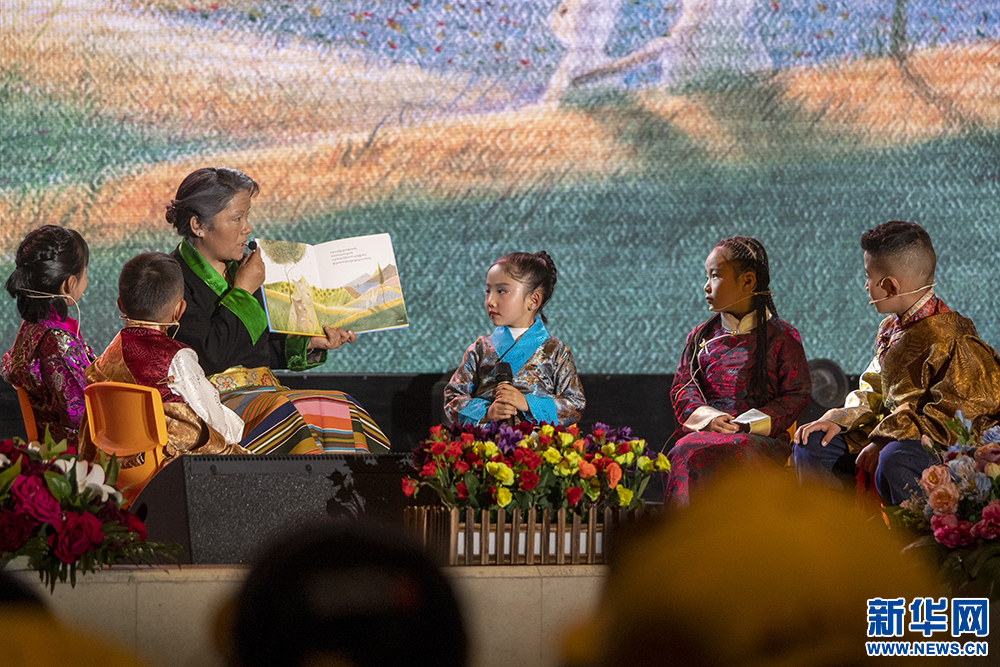 4月23日,諾諾童書館館員在講述繪本故事。新華網 旦增努布 攝