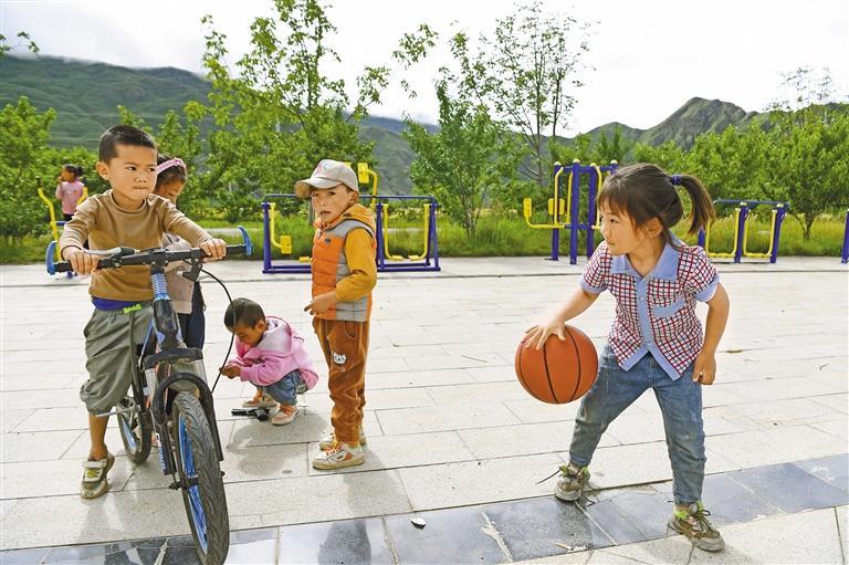 圖為山南市加查縣冷達鄉共康村的孩子們在干凈整潔的廣場上玩耍。記者 李洲 攝