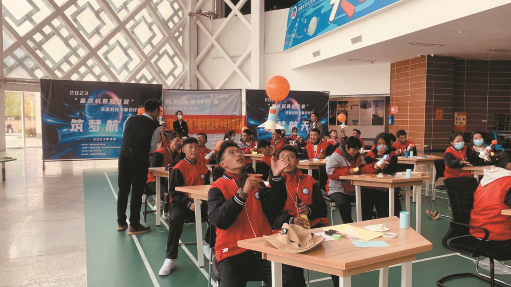 圖為在“筑夢航天”科普活動中,拉薩市第二職業技術學校學生們跟隨科技輔導員一起探索火箭升空的奧秘。 拉薩融媒記者 小索朗曲珍攝