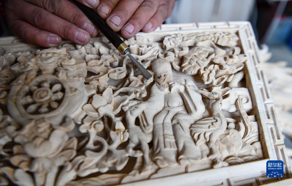 拉巴次仁在制作木雕(4月25日攝)。新華社記者 晉美多吉 攝