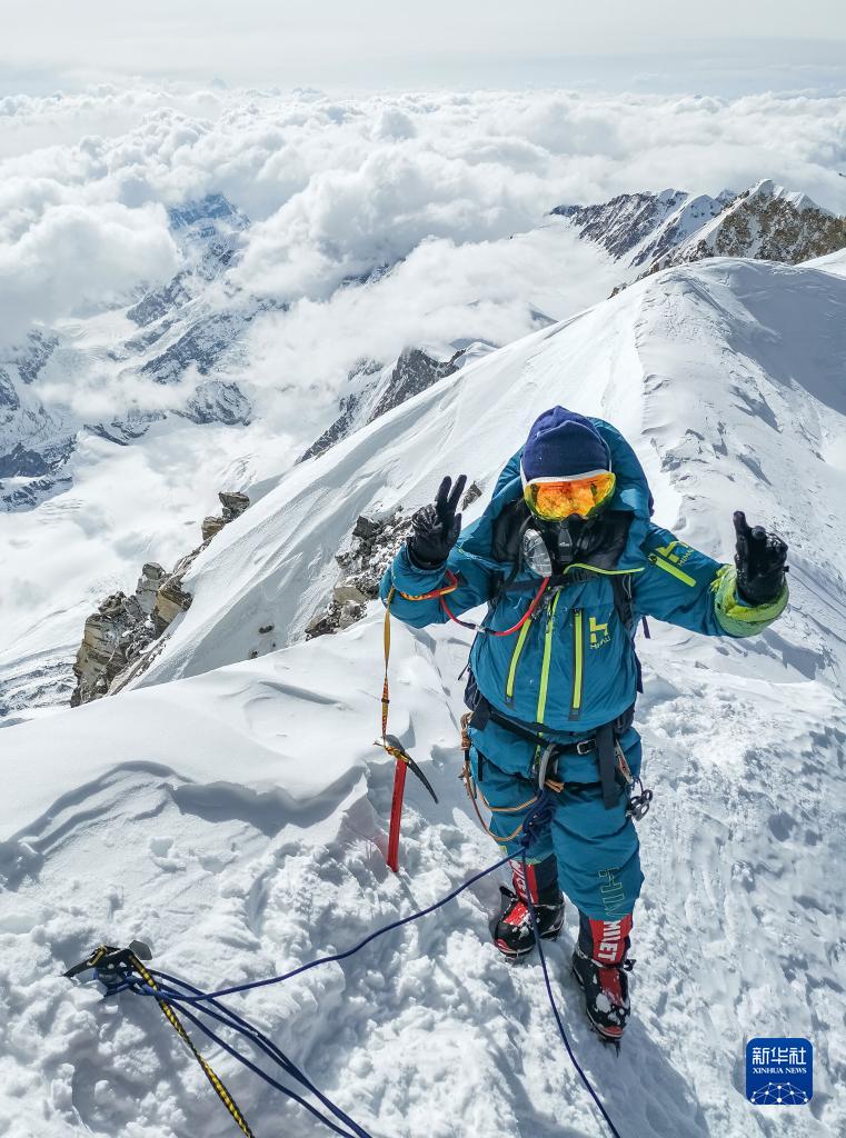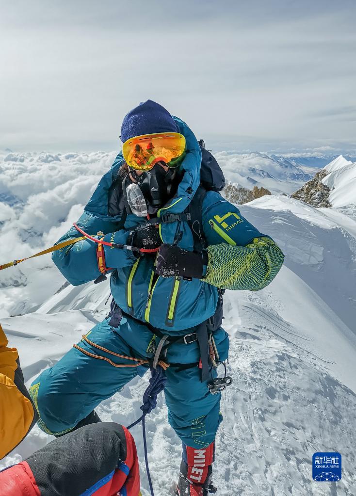董紅娟在海拔8027米的希夏邦馬峰頂(4月26日攝)。新華社發(頓巴 攝)