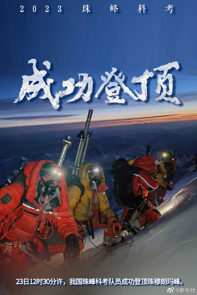 這是我國(guó)珠峰科考繼2022年之后,再次突破8000米以上海拔高度。當(dāng)日,科考隊(duì)員在珠峰峰頂利用科學(xué)儀器,采集珠峰峰頂?shù)难┍鶚悠罚糜诜治鰵夂颦h(huán)境指標(biāo)。