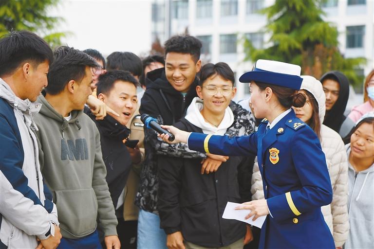 消防宣傳員在西藏大學(xué)開展消防安全有獎知識問答。肖暄 攝