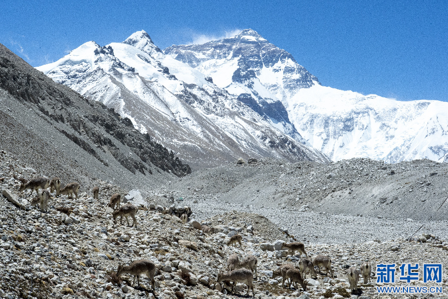 珠穆朗瑪峰腳下棲息的巖羊。新華網 旦增努布 攝