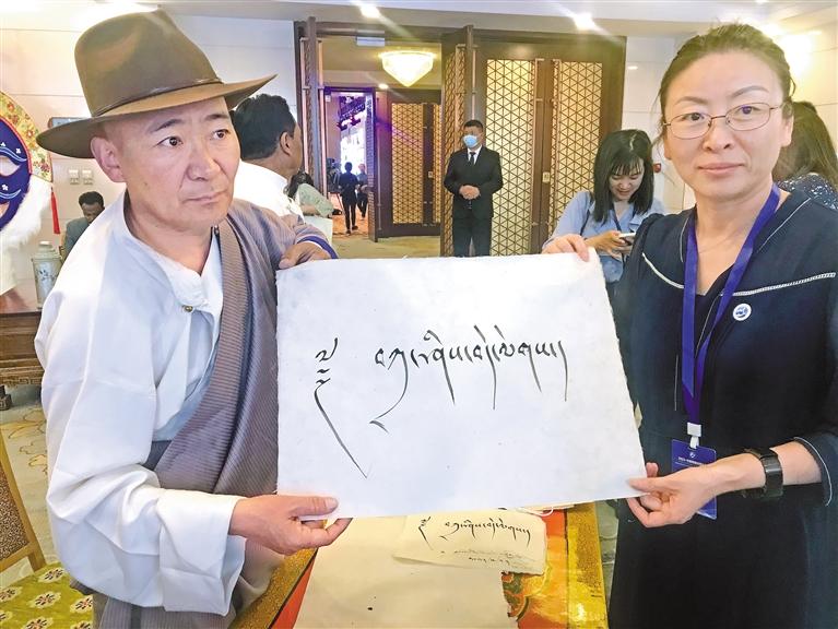 論壇會上,鋪開獨特的藏紙,手持光潤的竹筆,48歲的藏文書法家扎西頓珠鄭重寫下“扎西德勒”四個字,贈予前來參會的中外嘉賓。作為國家級非物質文化遺產代表性項目藏文書法(尼赤)的代表性傳承人,扎西頓珠希望讓更多人感受并了解西藏傳統書法之美。“這次論壇期間,我先后向中外嘉賓送上了300多幅書法作品,我們藏族傳統文化能被全世界看見并受到喜愛,推動各民族交往交流交融,感到非常開心和自豪。”剛從北京回來不久,閑不住的扎西頓珠又在準備參加藏博會的書法作品,傳播藏文書法文化。