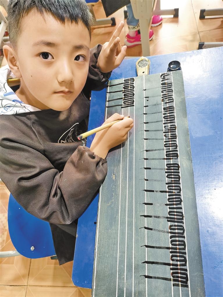 今年10歲的扎西次仁和他的同學們席地端坐,左手握木制藏文書寫板,右手持竹筆,一起認真練習尼赤派書法。扎西頓珠平時利用閑暇時間在家免費教授書法?!昂⒆幽茉趪壹壏沁z傳承人門下學習藏文書法,機會難得,我們全家人非常支持,也非常榮幸。孩子也學得非常認真?!笔忻窭纺弥鴥鹤觿倢懞玫臅ㄗ髌犯锌?。