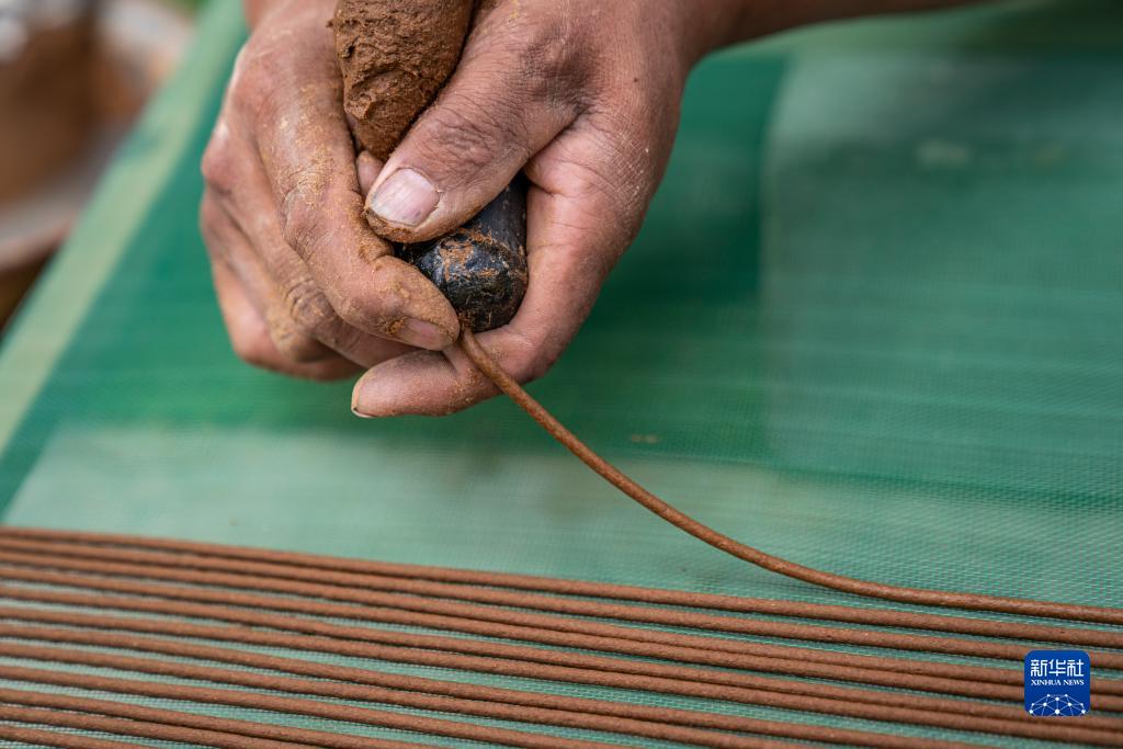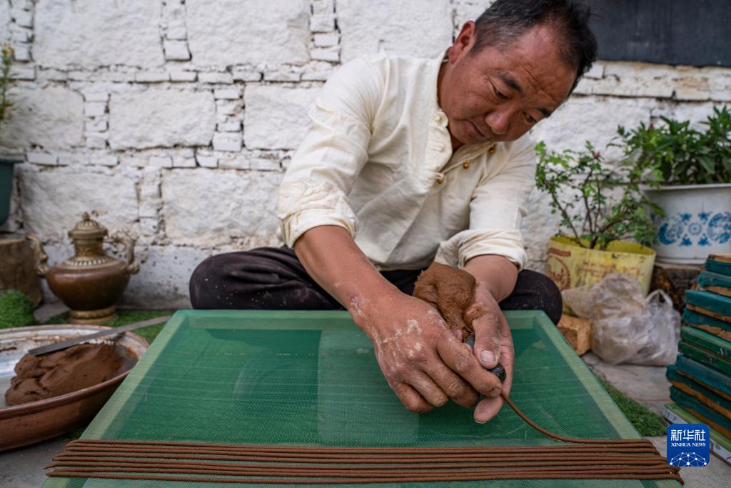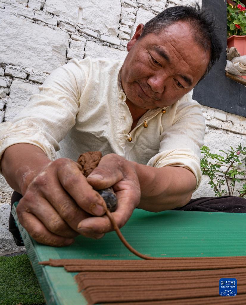 要保證每一根成型的藏香均勻且筆直,很考驗匠人的功底。為了制作合格的藏香,次仁多吉在地上一坐就是一整天,擠出的線香鋪滿房間。多年的制香經歷,讓他在擁有出眾技藝的同時,也患上了職業病——時常關節疼。但次仁多吉不僅堅持至今,還順應市場,研發了提神香、安眠香等新品種,并擴大了生產規模。