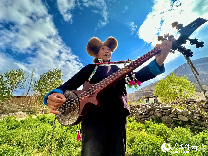 傳承人羅布次旦在彈奏扎念琴。人民網(wǎng)記者 次仁羅布攝