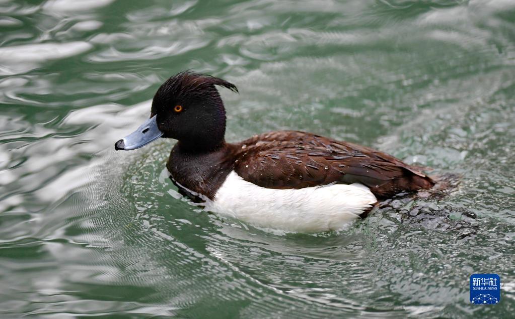 夏日里,白眼潛鴨和鳳頭潛鴨在西藏拉薩市拉魯濕地國家級自然保護(hù)區(qū)中干渠里覓食、嬉戲。