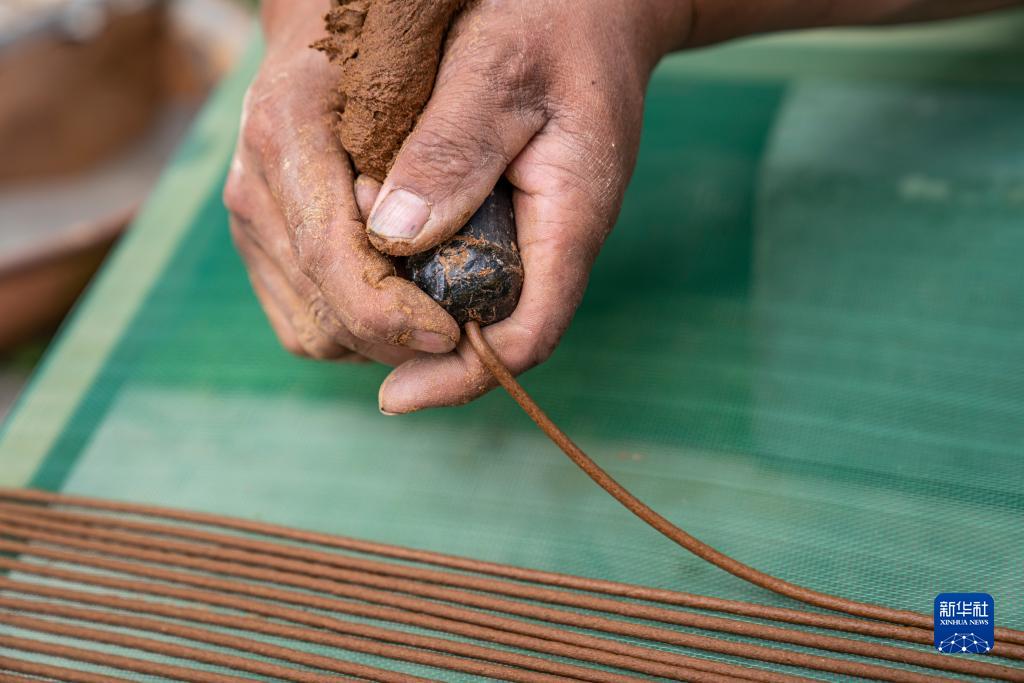 傳統的尼木藏香制作過程繁復,匠人需先用水磨將主要原料柏木碾成木漿,再將木漿晾曬制成香磚。隨后,把香磚揉碎,并加水制成香泥,按嚴格的比例配方加入藏紅花、麝香、檀香等數十種香料、藥材,塞入牛角擠壓成條,晾干后才成藏香。