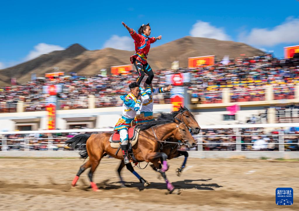 當日,作為第十八屆珠峰文化旅游節的活動之一,“策馬歡歌·珠峰云際”賽馬活動在西藏日喀則市桑珠孜區舉行。