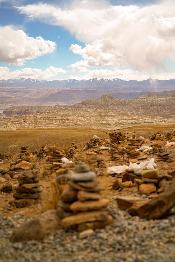 我來(lái)到札達(dá)土林的時(shí)候,除了為大自然的鬼斧神工而驚嘆之外,還看到了許許多多用石頭壘成的大大小小的瑪尼石堆。