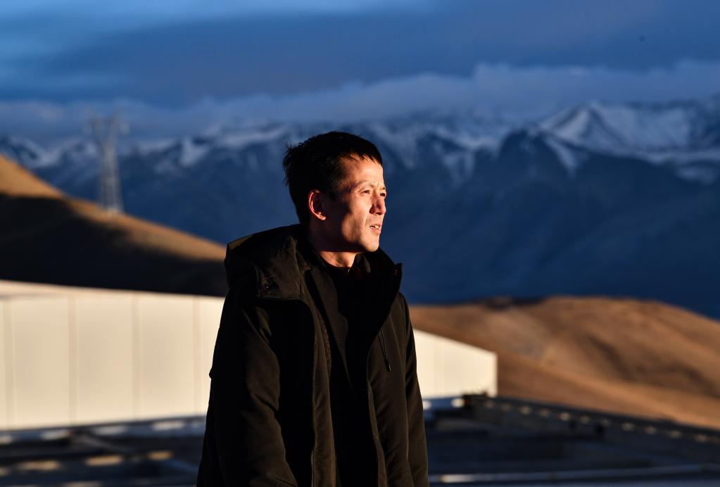 在阿里地區(qū)獅泉河鎮(zhèn)南部甲馬兒燈山海拔5100米的山頂上,我們看見(jiàn)了十年如一日守望璀璨星空的人——尤顯龍。他十七年前開(kāi)始就為阿里天文臺(tái)的選址而工作,如今負(fù)責(zé)天文臺(tái)數(shù)據(jù)觀測(cè)和運(yùn)維設(shè)備。尤顯龍也是為阿里天文臺(tái)工作時(shí)間最長(zhǎng)的一位工程師。