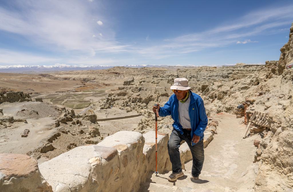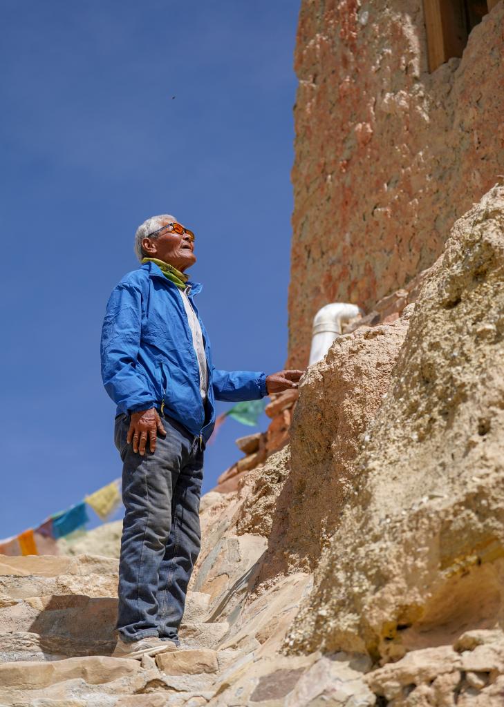 皮央和東嘎石窟遺址位于西藏自治區(qū)阿里地區(qū)札達(dá)縣境內(nèi)的皮央村、東嘎村,由皮央石窟群和東嘎扎西曲林寺遺址組成。由于兩村距離很近,遺址規(guī)模巨大,故命名為皮央和東嘎石窟遺址。仁增旺扎是一位75歲的老人,他從2002年開(kāi)始被聘為當(dāng)?shù)氐奈奈锉Wo(hù)管理員,從那時(shí)起就一直守護(hù)著皮央和東嘎石窟遺址,至今已經(jīng)有20多年。