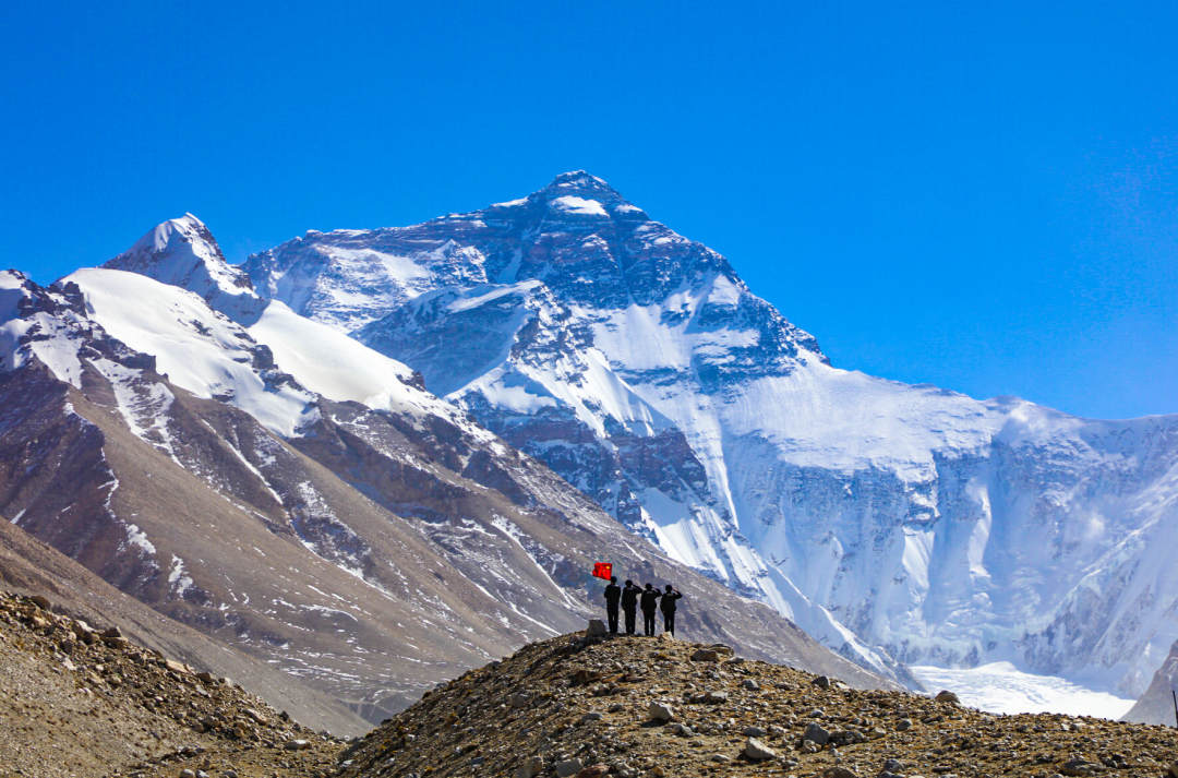 近日,一幅有關(guān)珠峰的攝影作品也火了。