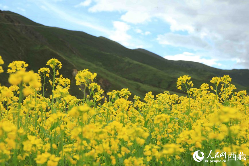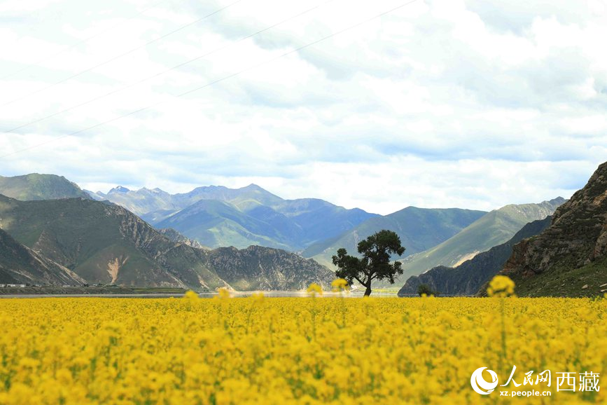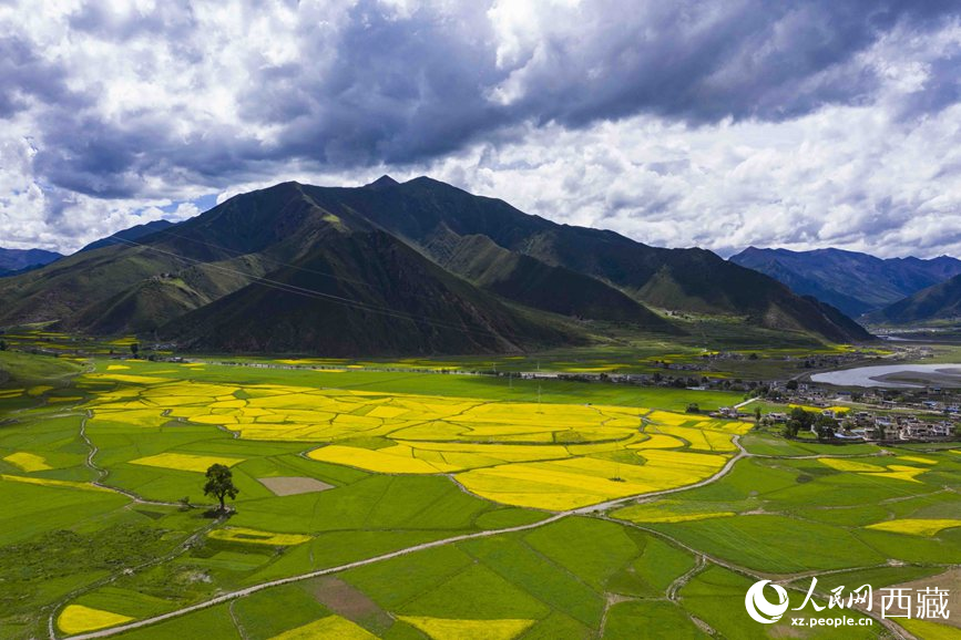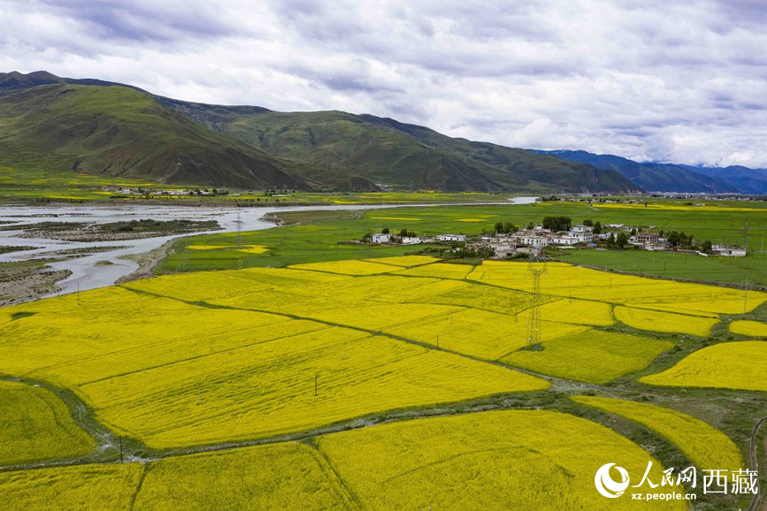 七月,正值拉薩墨竹工卡縣油菜花盛放的季節。經過充足的光照、豐沛的雨水,大地仿佛披上金毯,黃燦燦的油菜田與翠綠的山巒構成了一幅美麗的鄉野畫卷。