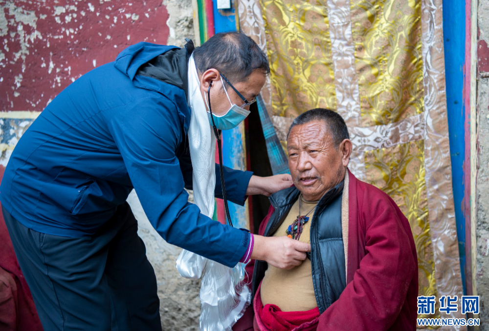 7月13日,來自北京安貞醫院的醫生在西藏丁青縣孜珠寺為僧人義診。新華網 旦增努布 攝