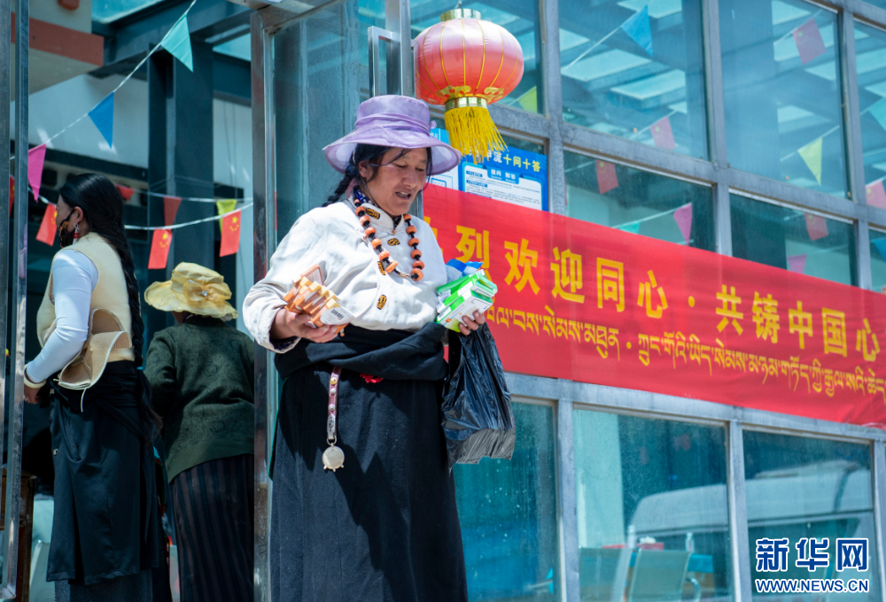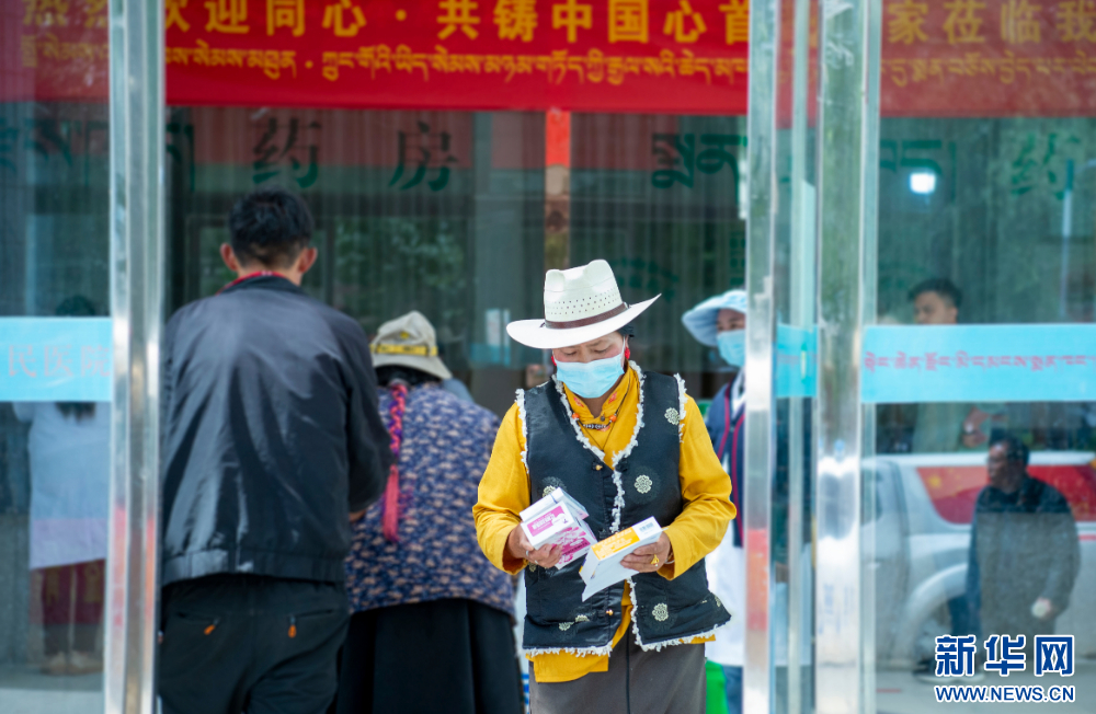 7月9日,群眾在西藏丁青縣人民醫院內看完病后拿到組委會捐贈的藥品。新華網 旦增努布 攝