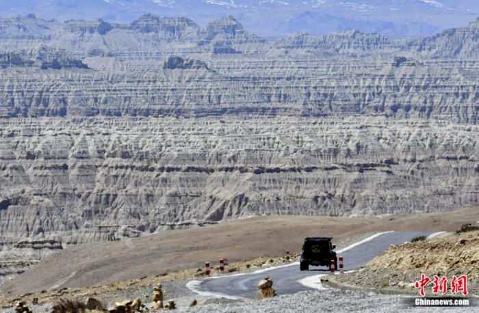 汽車駛向西藏阿里札達土林。札達土林位于西藏阿里地區札達縣境內,土林千溝萬壑,形態奇絕,景色迷人。李林 攝
