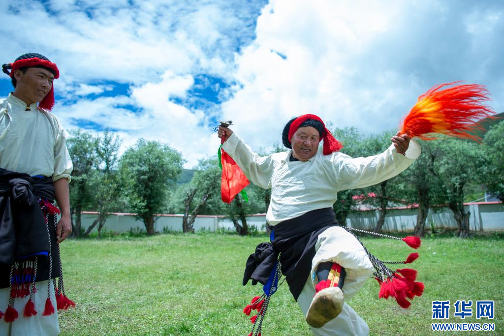 7月12日,西藏昌都市丁青縣尺犢鎮烏巴村文藝演出隊隊員在排練。 新華網 旦增努布 攝