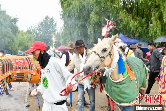 圖為“望果節”茶巴朗村村民準備賽馬。貢嘎來松 攝