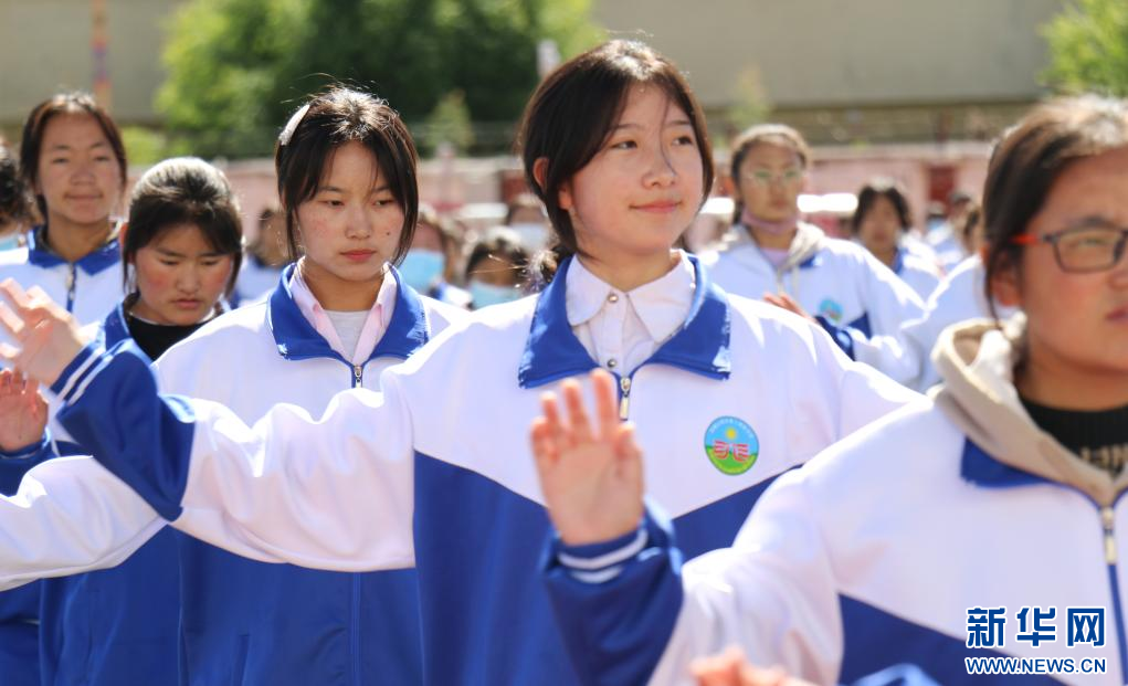 山南市第二高級中學的學生正在操場做課間操(7月17日 攝)。新華社記者 聶毅 攝