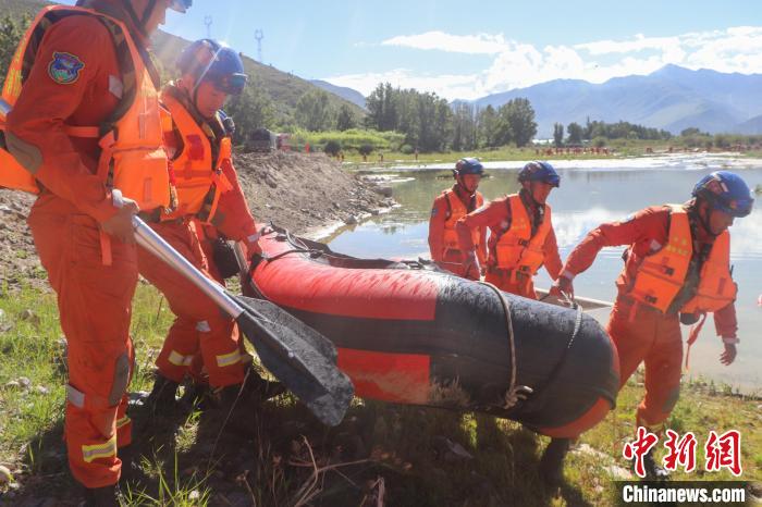 圖為演練現場進行舟艇救援。西藏自治區森林消防總隊拉薩市大隊 供圖