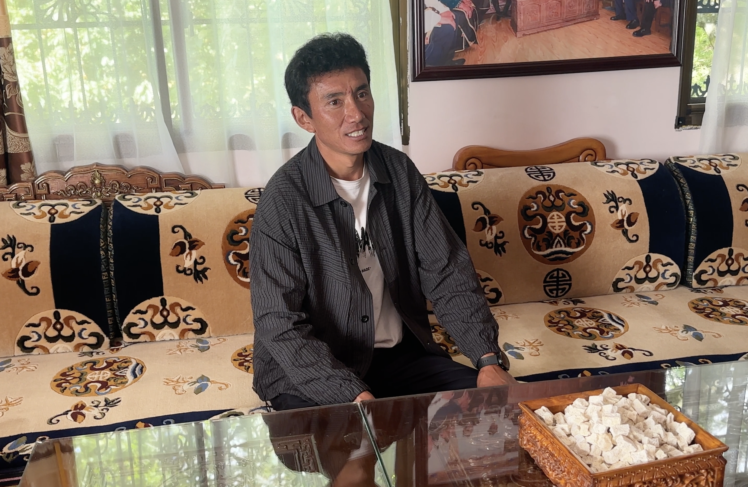 一位嘎拉村村民盛情邀請我們到家中坐坐。據了解,他叫達瓦堅參,今年39歲,是林芝本地人,以農牧運輸為主業,再加上種植養殖、土地流轉、桃花節分紅等收入來源,家里的年收入能達到30萬元。談到這里,達瓦堅參的臉上展露出幸福的微笑,“我對現在的生活很滿意”。未來他還計劃通過發展民宿,拓寬自己的收入渠道。