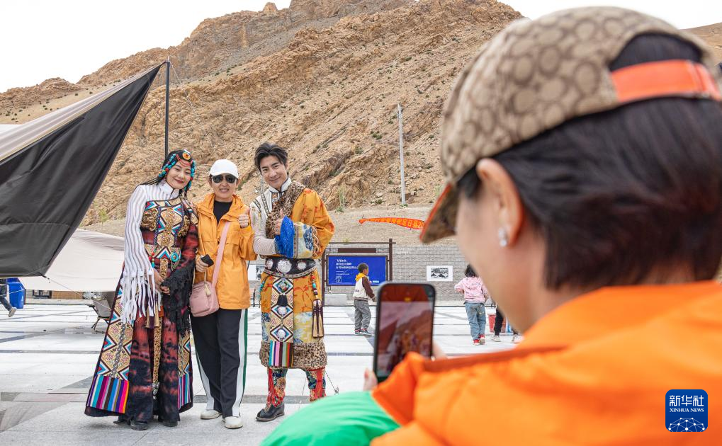 游客和演員合影。新華社記者 丁增尼達 攝